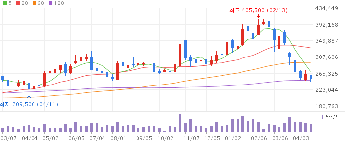 하이브 주가는 최근 조정을 거친 이후 반등을 시도하는 흐름을 보이고 있다. 거래량은 조정 구간에서 감소하고, 반등 시 증가하는 패턴을 나타내며 매수세 유입이 점진적으로 확대되고 있다. 현재 구간은 단기 바닥을 형성하고 상승 전환을 시도하는 초기 단계로 해석된다.