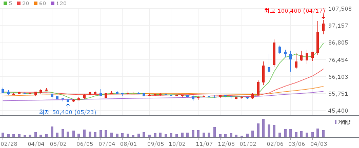 주가는 2026년 들어 이미 큰 폭의 상승을 기록하며 시장의 기대감을 선반영한 상태다. 다만 상승 이후에도 고점 대비 큰 조정 없이 견조한 흐름을 유지하고 있다는 점이 중요하다. 이동평균선은 정배열을 유지하고 있으며, 거래량 역시 점진적으로 증가하는 추세다. 이는 단순 단기 급등이 아니라 기관 및 외국인 수급이 동반된 ‘추세 상승’으로 해석할 수 있다. 단기적으로는 상승 피로감에 따른 조정 가능성은 존재하지만, 구조적 성장 스토리가 유지되는 한 추세는 이어질 가능성이 높다.