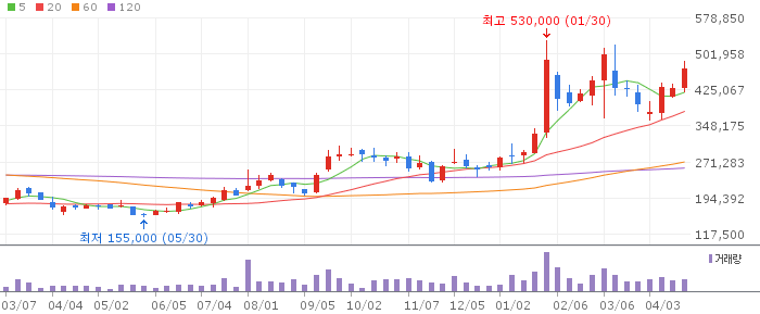 주가는 중장기적으로 우상향 추세를 유지하며 신고가 영역에 근접한 흐름을 보이고 있다. 단기적으로는 상승 이후 조정 구간에 진입했지만, 주요 이동평균선 위에서 안정적인 흐름을 이어가고 있다. 현재는 상승 추세 내에서 자연스러운 숨고르기 구간으로 해석된다.