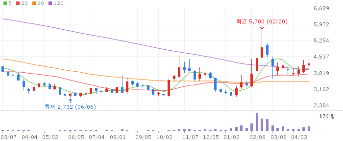 주가는 장기간 하락 이후 저점을 형성하고 점진적으로 반등하는 흐름을 보이고 있다. 최근에는 저점이 높아지는 구조가 나타나며 상승 추세 전환 초기 국면에 진입한 모습이다. 거래량 또한 점진적으로 증가하며 수급 개선 신호가 나타나고 있다.